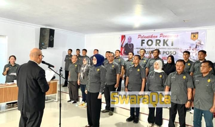 SWARAQTA-Pengurus Federasi Olahraga Karate-Do Indonesia (Forki) Kabupaten Poso, Sulteng, periode 2025-2029 resmi dilantik, Sabtu (11/4/2026).